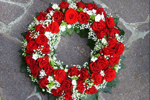 Der Kranz als Sinnbild für die Wiederkehr wird oftmals als letzter Gruß niedergelegt, um Trost und Anteilnahme auszudrücken.